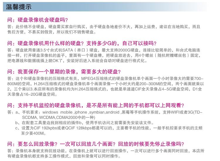 系统资源:同时多路录像,多路辅码流,多路回放,多路网络操作,USB备份,刻录