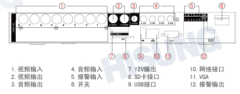 视频输出: 2路BNC,1路高清VGA输出,支持3路同时输出