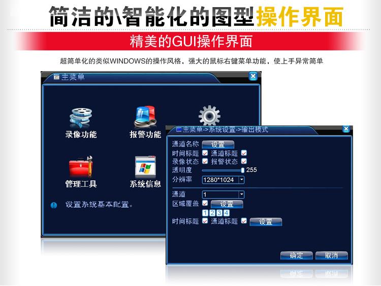 操作界面:16位真彩色图形化菜单操作界面,支持鼠标,遥控器操作。
