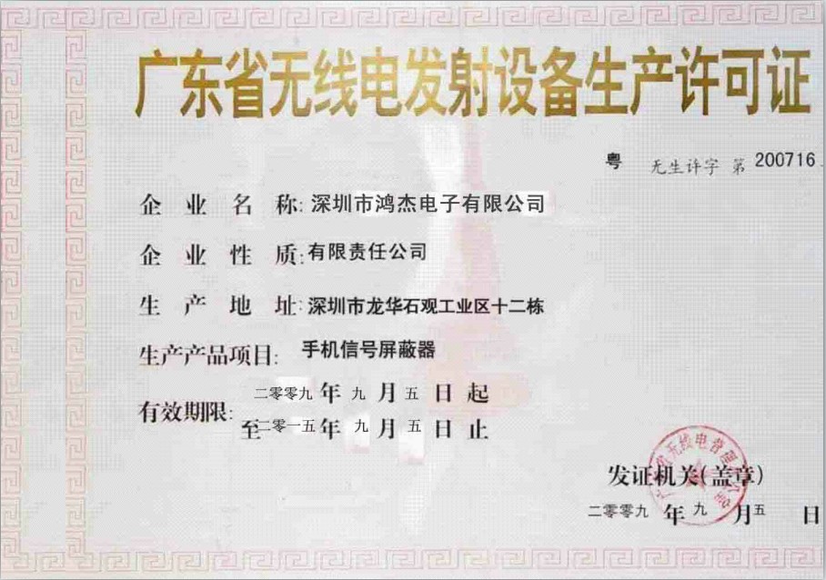 无线电发射设备生产许可证