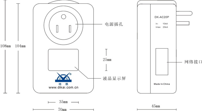 DK-AC20P便携式电源电涌保护器,外形美观,阻燃塑料外壳,内部结构严谨,性能优越。本产品设有电源防雷线路以及网络防雷线路,既能很好地抑制雷电感应产生的过电压、过电流,并能抑制线间可能出现的过电压和杂波信号,从而保证电器的安全。DK-AC20P便携式电源电涌保护器主要用于单相交流电源末级防护以及网络防护。