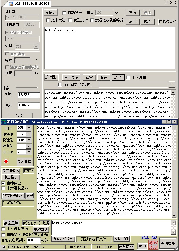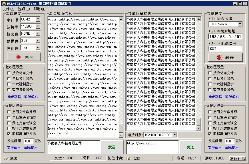工作端口,目标 IP 地址和端口均可设定;