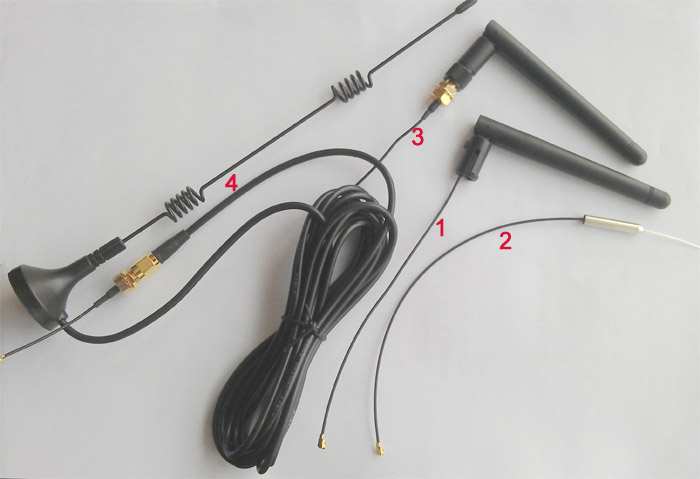 B、普通天线,软线式天线(2 dbi) 免费提供(下图1 和2 ),适合测试和普通应用。