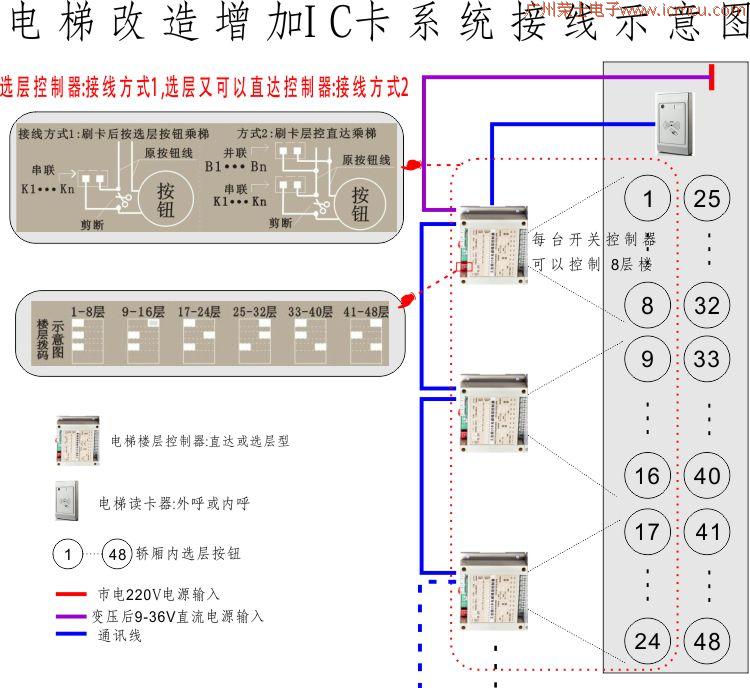 2、IC卡控制系统异常断电,电梯立即恢复原有直接按钮选层状态正常运行。