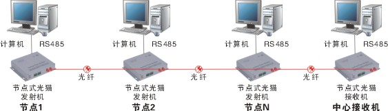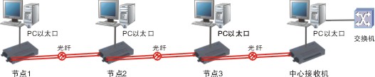 - 1) 视频监控图像及音频的光纤传输在安防领域,我们凭借电信级的技术,于04年底推出全系列的视频光端机,从1路到64路视频,1到16路音频,1到8路反向/双向数据,以及以太网口、电话接口、开关量接口均可提供,满足不同工程商的需要,已在全国10多个省市得到应用,随着社会治安监控项目的启动,这将是我公司较大的增长点,我们将逐步完善光纤、E1专线、双绞线、网络/IP 传输图像的一系列产品线,成为工程商们的视频传输综合解决方案提供商。2) 光纤综合接入复用在一对/一芯光纤上,混合传输 E1、以太网、