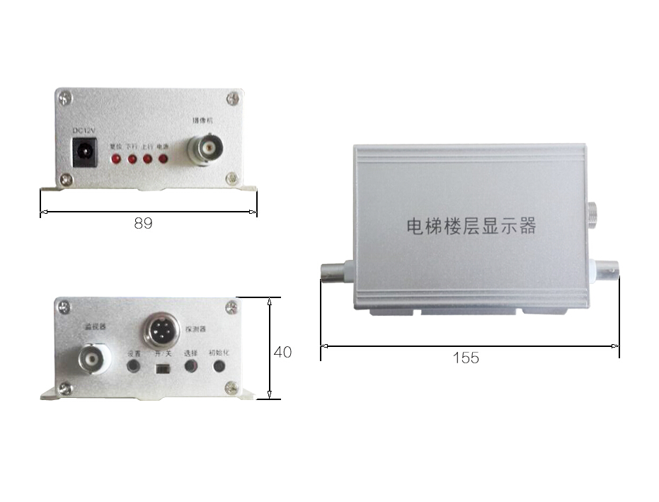 电梯楼层显示器,又称之为电梯楼层字符叠加器,简称楼显或是层显,适用于电梯的视频监控中,能在监视控画面上指示电梯所在楼层、运行方向、电梯名称等。比用摄像机直接观看电梯内的楼层数码管显示可靠,避免因数字显示被遮挡或其它任何原因而导致重要的信息丢失;特别适合电梯视频监控管理,对于出入电梯的人员进行监看,或保留录像以备日后查阅。