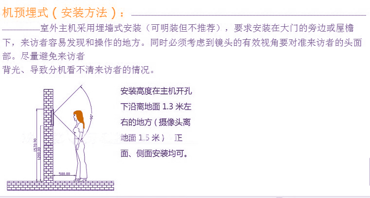 可与分机或管理中心双向对讲,捕捉并传送门前影像给分机或管理中心。