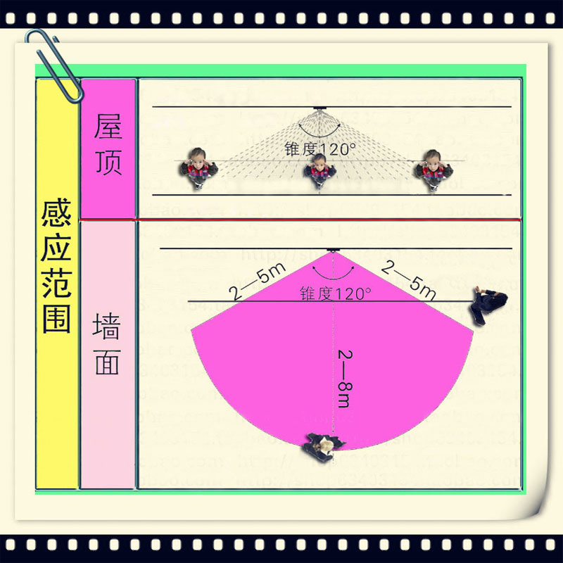 感应角度:110-140度左右(与安装有直接的关系),