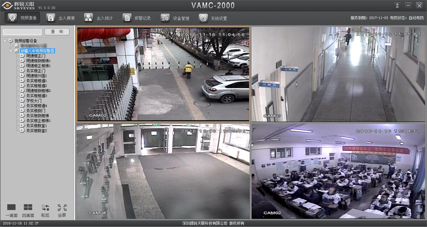 同时,教育主管部门可以通过行业应用管理平台与各个学校的视频报警器无缝对接,实现对各片区学校不同视频监控系统的视频数据统一和集中管理,完成对各学校的视频查看、值班实时监督和报警信息查询。对及时发现学校安全隐患,加强监督、提高安全防范水平起到了极大的推动作用。
