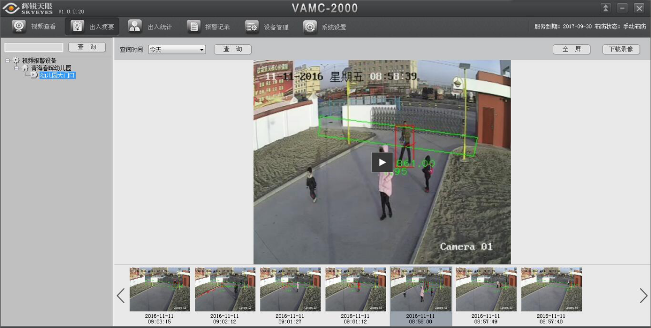 目前,大部分校园已投资几十万甚至上百万安装了视频监控系统,却仅起到一个录像的作用。利用辉锐天眼的ESS视频报警器,通过简单快速升级(只需通过一根网线接入ESS,并简单配置)即可对学校发生的围墙翻越、值班人员脱岗、夜间食堂和财务室入侵等行为产生智能报警,形成了事前防范的主动智能化报警系统,并且花费很少(只需花费原有系统3%的费用)就可极大的提升原系统的使用价值!