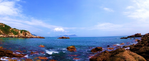东西冲这条深圳最美的海岸线,一路山色海景。湛蓝的大海在阳光的照射下越发通透明亮,海带水藻清晰可见,礁岩上还依附着几只可爱的小海螺。沙滩细软,礁石坚硬,奇特的海蚀岩连绵不绝,漂亮的鹅卵石排排铺开,星星点点的小岛成为大海里美丽的点缀,这绝美的景色让人不得不赞叹大自然的鬼斧神工!