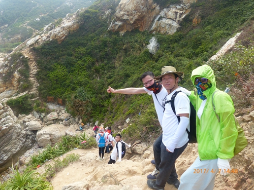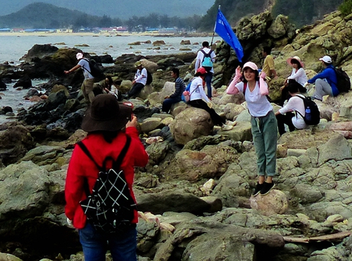 大家一边欣赏着美景,一边整装待发。集体合影后,在领队的带领下,我们沿着海边小路浩浩荡荡的向西冲口岸前进啦。
