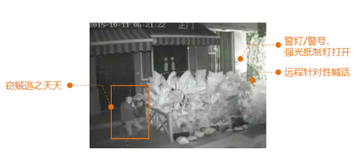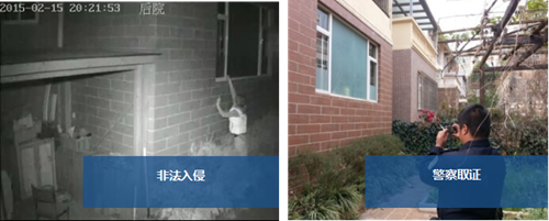 (3)2015年2月15日,一名不法人员趁用户试图闯入云南某小区别墅家中偷盗。该不法人员企图从窗户爬进用户家中,触发墅安居报警,现场当即启动远程声光联动报警,强烈的声光震动迫使嫌犯狼狈逃窜。