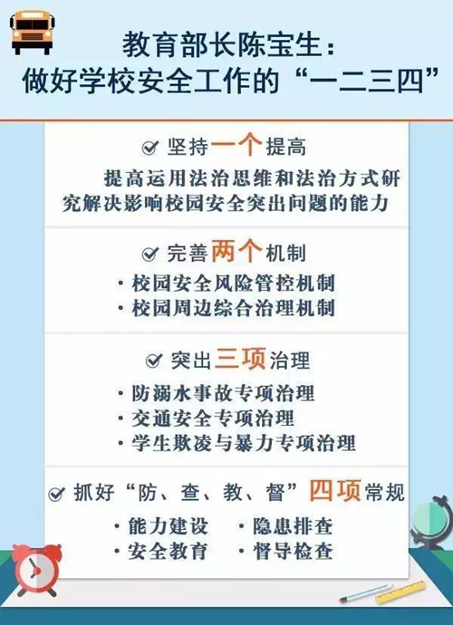 2017年2月,教育部长陈宝生发表做好学校安全工作的“一二三四”重要讲话。