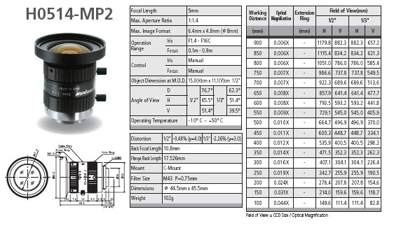百万像素镜头-H0514-MP2