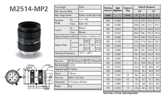 鸿富自动化供应工业镜头computar百万像素镜头-M2514-MP2