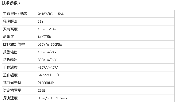 | 产品名称: 反光镜式单鉴被动红外探测器,防宠物功能可选 |