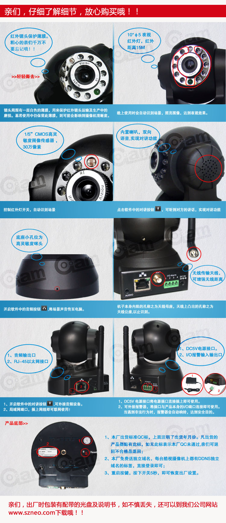 IPCAM支持多个协议,例如,TCP/IP, SMTP和HTTP.当IPCAM触发报警时,自动