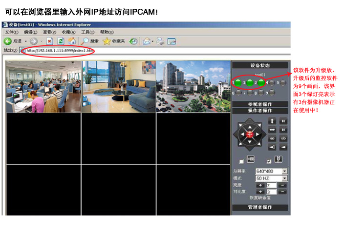 配置简单——管理界面使用的是标准Web浏览器。管 理者能够通过局域网或者因特网控制和管理IP Camera;