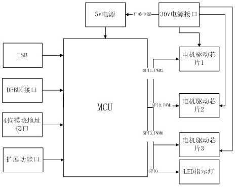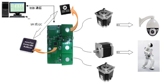 新唐ARM Cortex-M0内核的32位微控制器M054LAN保证了电机驱动的稳定高效。电机驱动芯片采用安森美的AMIS305系列、306系列、304系列芯片,都是专为实现驱动电机而设计的电机驱动芯片,芯片只需外加少量无源元件,即可满足电机驱动物理层规范功能要求。