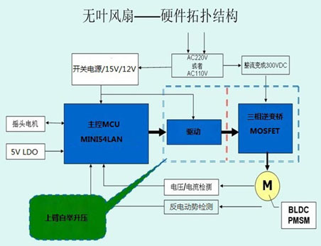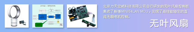 北京力天宏威科技有限公司自行研发的无叶风扇控制板集成了新唐MINI54LAN MCU,实现了高性能稳定的直流无刷电机控制。