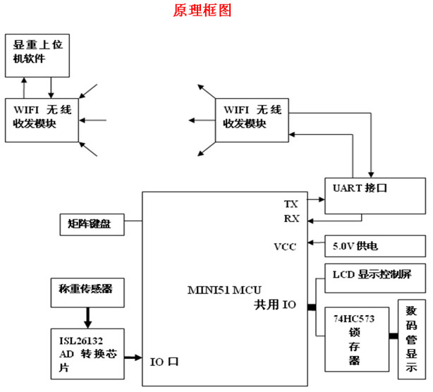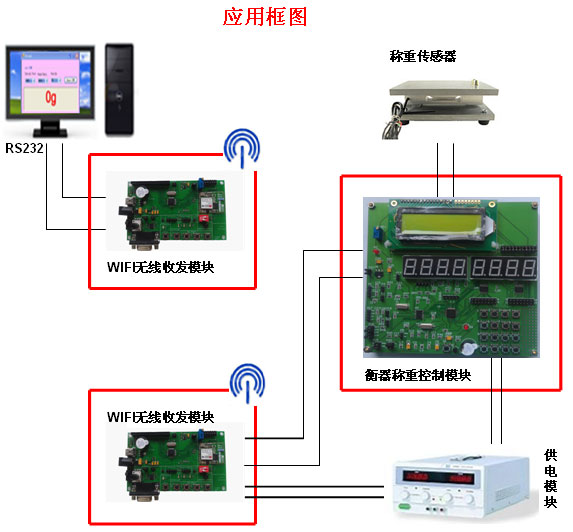 衡器称重后,经WIFI通信传输到上位机,直接显示重量。