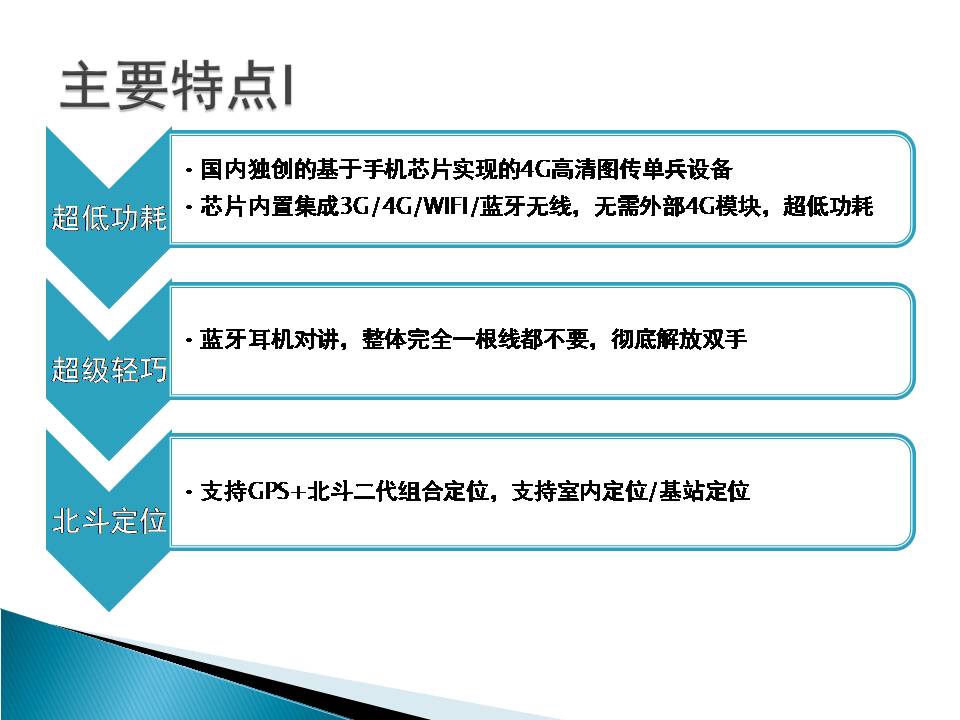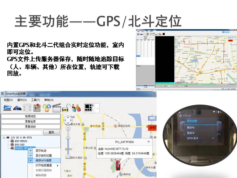 17 | 全球定位系统 | 产品内建GPS及北斗二代通讯模块,能接收卫星数据并提供定位信息,并且通过内置的通讯模块将位置信息实时上传至指挥中心。 |