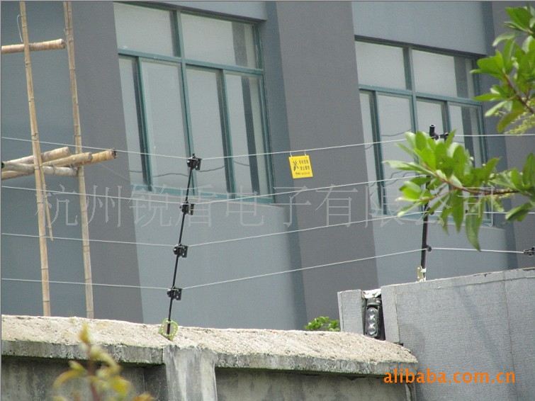 RDJ静电感应电缆报警系统的探测器所给出的载波信号通过线缆时,该载波在0电位间振荡,使线缆周围产生一个稳定的交变电场,生物体靠近时,其所带静电场会对该交变电场产生一个改变,探测器就以这个改变幅度为依据,判断是否触发报警。在需要防范的区域每隔4米安装1根支架,在支架上根据安全等级架设探测电缆,在围墙上安装每相邻2条电缆间距为20cm,在地面上安装每相邻2条电缆间距为30cm,探测电缆数量多少和安全等级成正比,支架与探测器之间绝缘子隔离,这样便购成了一个防护围栏;将探测器接入围栏,通电时围栏上产生交变电磁场,当入侵者靠近(15cm左右)、触摸、剪断、翻越该磁场(防护围栏)时,经探测器分析处理确认其幅度、方向、速度均满足报警预设条件时,立即发送信号给报警主机进行报警。