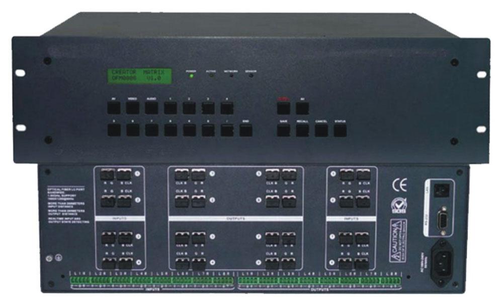 MUOF0808是一款采用光纤传输,使信号长距离传输,不受干扰,信号无衰减。支持8路音视频信号输入/输出的音视频矩阵切换器。可将输入8路光纤信号同步或异步快速切换一路或多路通道输出。光纤输入/输出接口采用多模LC型接口。光模可拔插,用户可根据需要,更换光模。