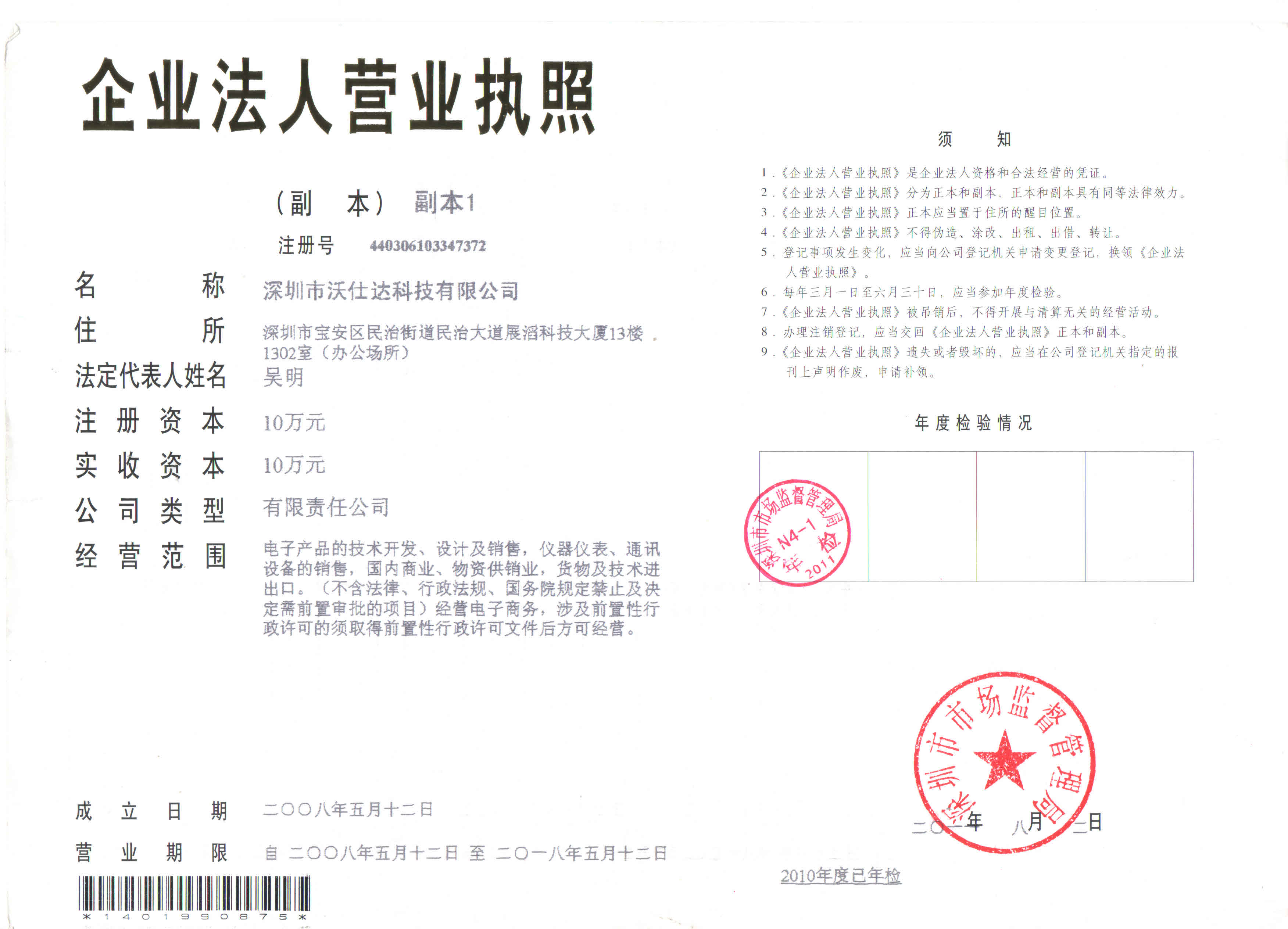 深圳沃仕达科技有限公司