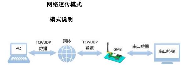 此模式下,用户的串口设备可以通过GPRS模块GM3发送数据到指定的服务器上。GM3支持两路socket链接,即socket A和socket B,两路链接相互独立。后文有详细介绍。