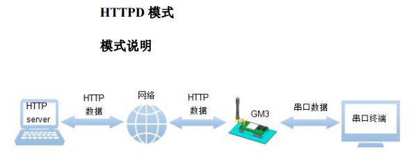 GPRS模块GM3主要有4种工作模式:网络透传模式、HTTPD Client、短信透传模式、AT指令模式。