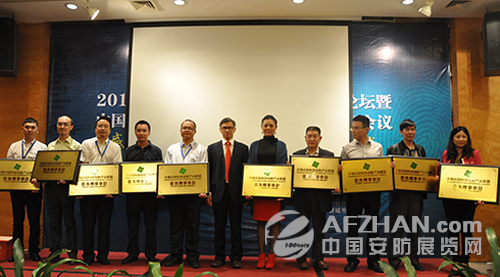 河南康联安防董事长康新力(右四)作为企业代表领取常务理事长牌匾
