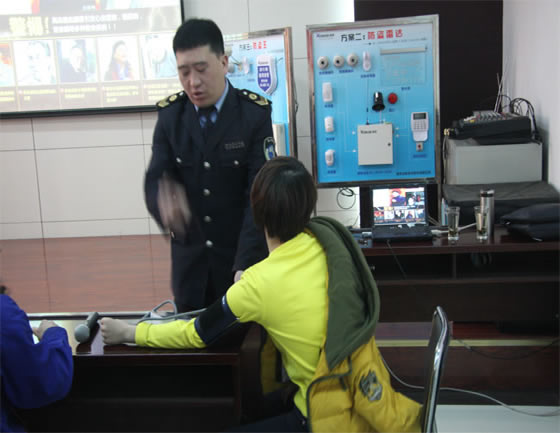 教员现场为康联员工示范血压计的使用