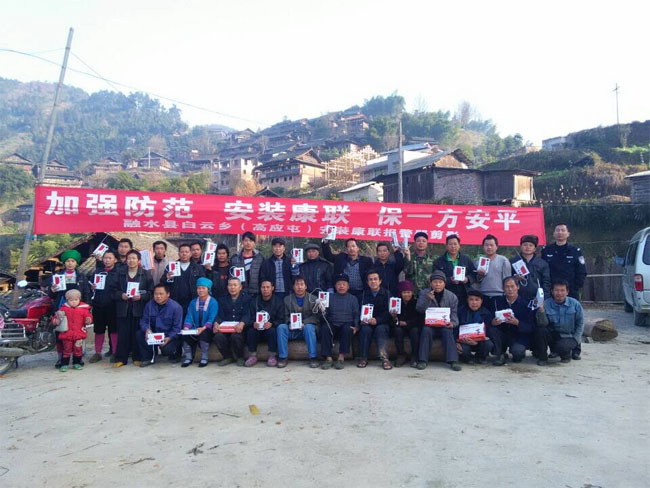 后来当地派出所领导在石总那了解了康联报警器,当有盗窃发生时,报警器立即发出高分贝警报声报警,及时提醒人员有盗窃发生,非常适合当地情况。于是当地民警联系到石总一起到被盗过的村屯进行先试用后安装,让群众体验电子防盗的好处。2012年林城村友付屯刚开通公路,几头黄牛就连续被盗。该屯群众还有耕牛的农户立即安装报警器,由于是秘密安装,几乎没有人知道。往后的一段时间里盗贼因之前连连得手继续疯狂的到友付屯作案盗窃耕牛,然而令盗贼意外的是每次下手时都被农户及时发现,农户不但报警而且全村人合围盗贼,在好几次警民联合围追堵截之下,盗贼落荒而逃。从那时至今该屯再无案件发生。过上了祥和的生活。