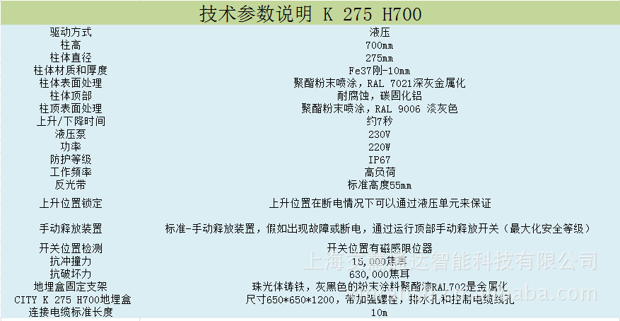 此型号只有全自动型,极高抗破坏能力是它的显著特点。此款产品针对频繁使用高安全级别要求而设计。它的应用包括:保护型道闸,或者特别敏感区域的准入,比如大使馆,公共办公区,行政单位,银行等等。撞击后的275K H700隐藏式立柱会产生两种形变:擦伤和永久性损伤。