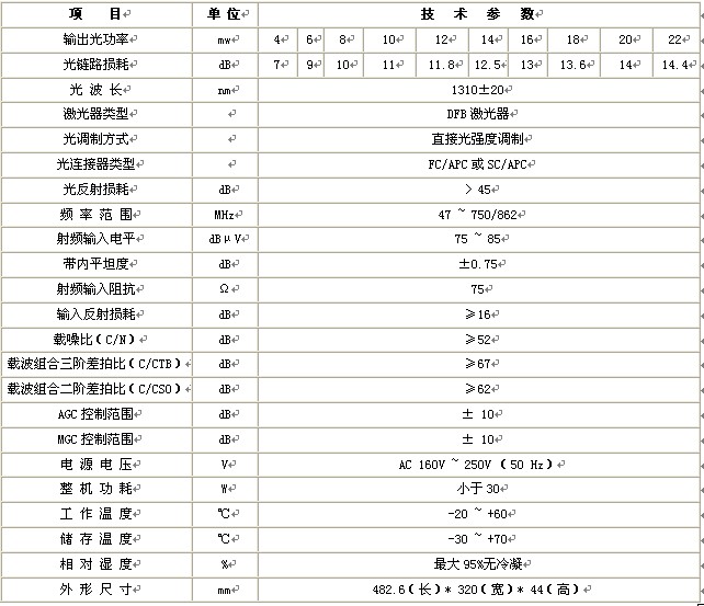 1310nm带预失发射采用高性能制冷DFB激光器,在1310nm窗口传输模拟电视信号和数字信号。发射机分为4、6、8、12、14、16、18、20mw多种功率供用户选用。该发射应用国外先进的预失真电路发射模块,使链路指标更优异,满足网络高性能指标的要求,具有良好的频率响应、失真、噪声特性好等特点。其优越的性能可与国外产品相媲美,是一款替换国外产品的优质国产发射机。