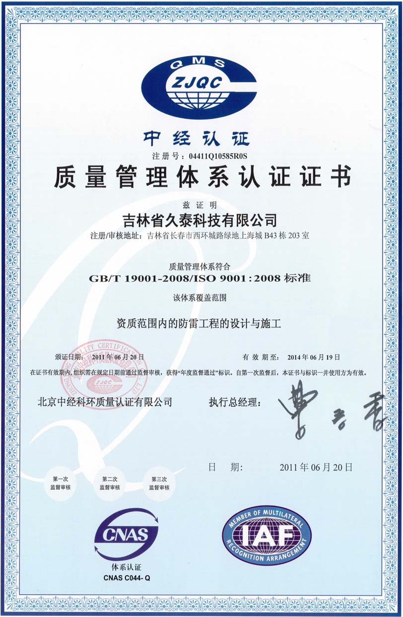 质量管理体系认证证书