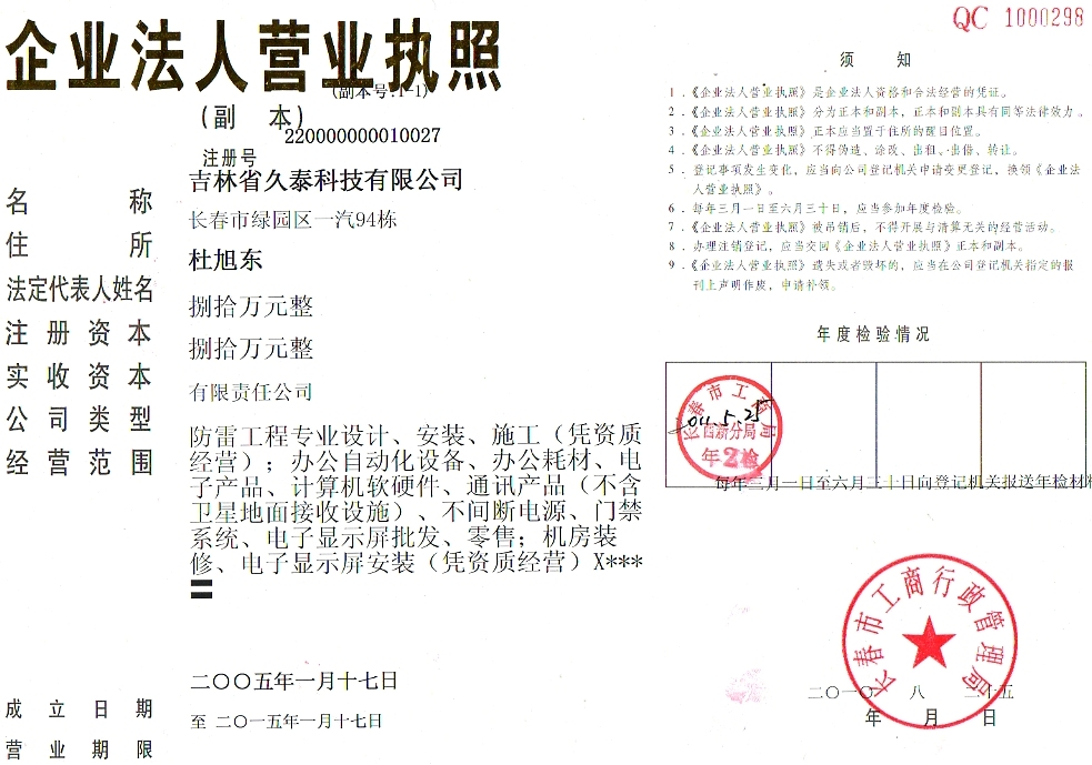 防雷工程专业设计、安装、施工(凭资质经营);办公自动化设备、办公耗材、电子产品、计算机软硬件、通讯产品(不含卫星地面接收设施)、不间断电源、门禁系统、电子显示屏批发、零售;机房装修、电子显示屏安装(凭资质经营)