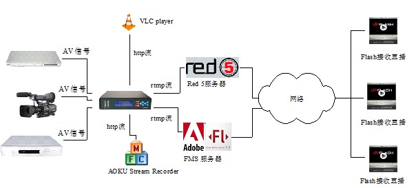 AVBox 2010最大的亮点就是可以同时编码2个不同码率的直播流,以便于直播和录像分别采用不同码率,分别达到最佳效果;AOKU AVBox 2010支持http协议、RTMP协议,借助FMS或者Red5等流媒体服务器,用户直接通过Flash插件观看直播内容,无需下载客户端;AOKU AVBox 2010的另一个亮点就是低延时,也是无需下载客户端实现低延时直播的唯一选择。