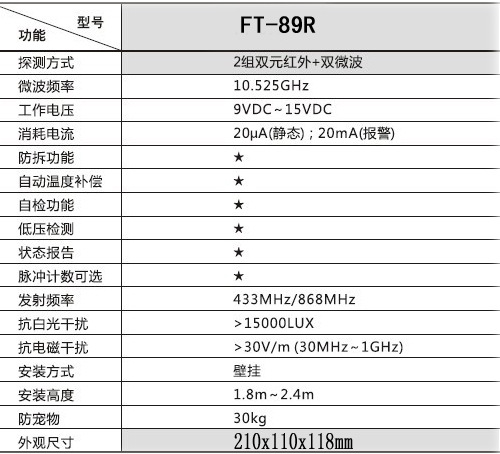 厂家低价直销正品福科斯FT-89R户外无线四鉴探测报警器