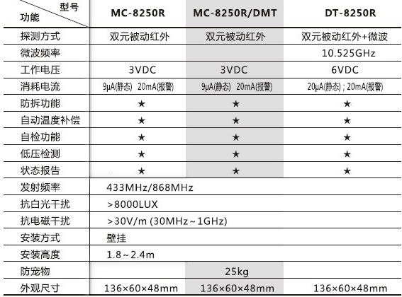 厂家直销正品福科斯MC-8250R室内无线探测防盗报警器