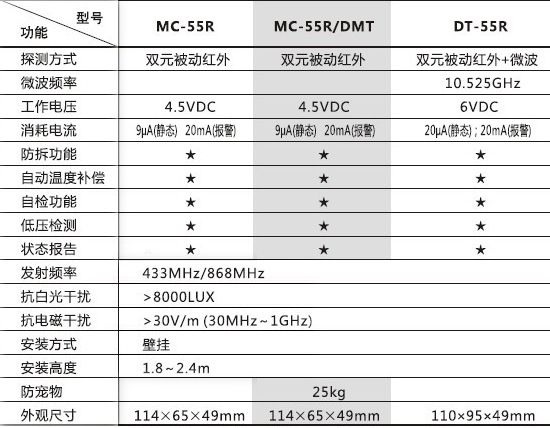 福科斯人体红外报警无线感应探头MC-55R DT-55R技术参数:
