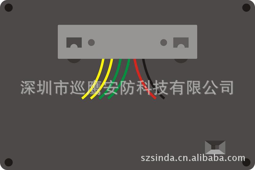 2)将导线从主机背面引出有线探测器及对讲喇叭(如下图: