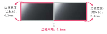 美格DID46寸超窄边拼接显示单元左边和上边的边框宽度为4.3mm,右边和下边的宽度为2.4mm。多屏拼接时边框间隔为6.7mm, 是目前全球市场上边框极窄的显示屏,其出众的显示效果超乎想象。