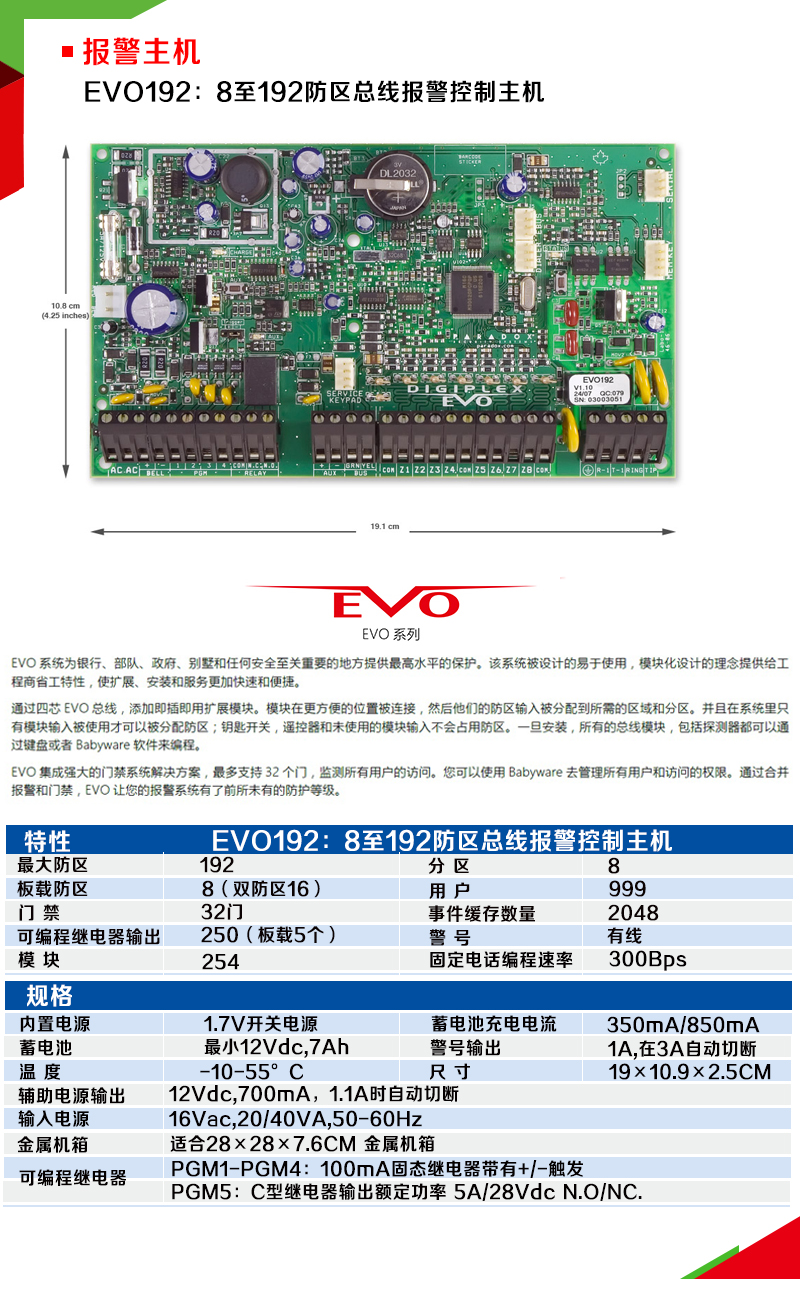 Paradox加拿大枫叶 EVO192——8至192防区总线报警控制主机