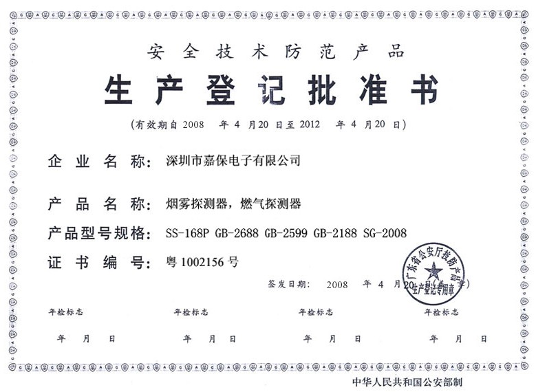 生产登记批准书