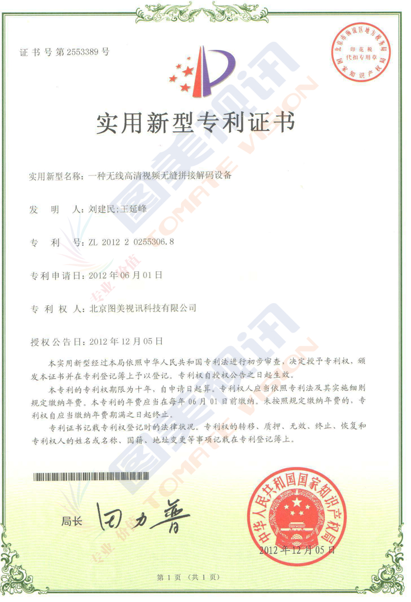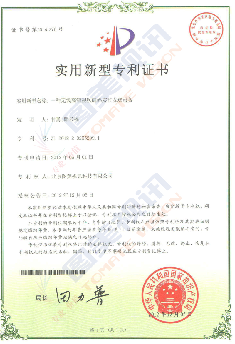 实用新型专利证书