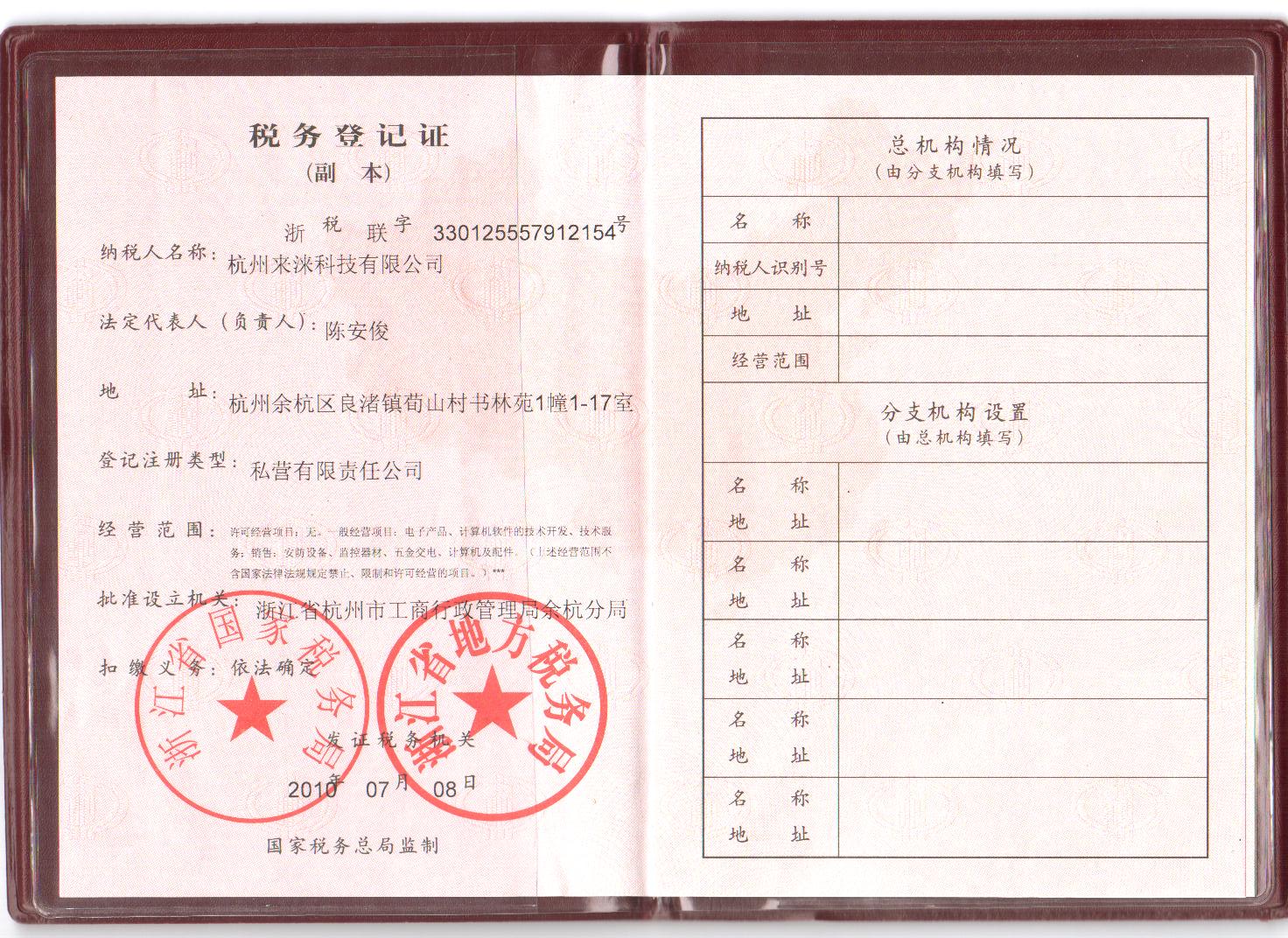 税务登记证书