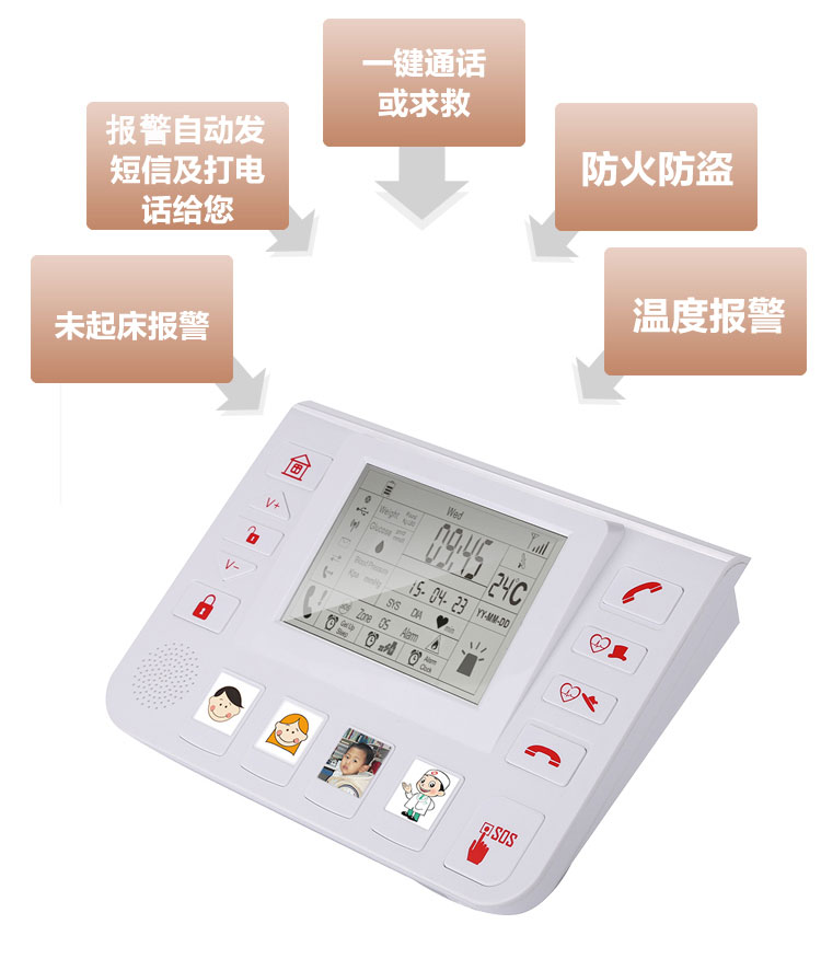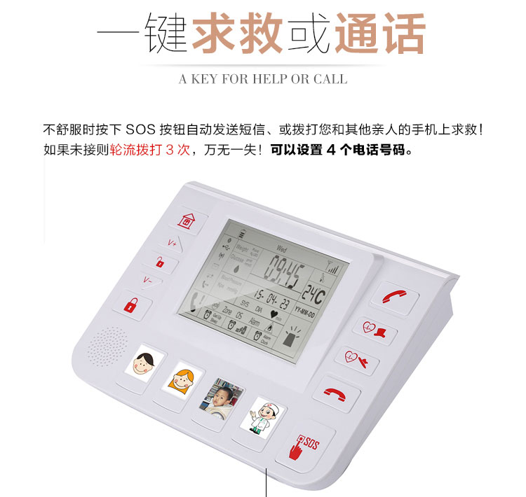◆离家、在家状态按键,让子女随时知道老人是否外出以及是否在家;
